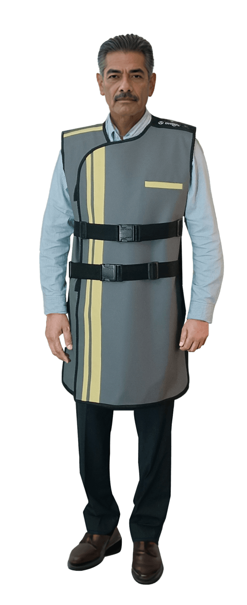 A lead-free full wrap coat apron is a type of radiation protection garment designed to shield the entire torso, including the front, back, and sides, from exposure to ionizing radiation during medical